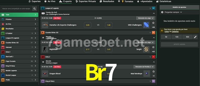 A aposta Br7 oferece aos jogadores a experiência mais conveniente de apostas em eSports!